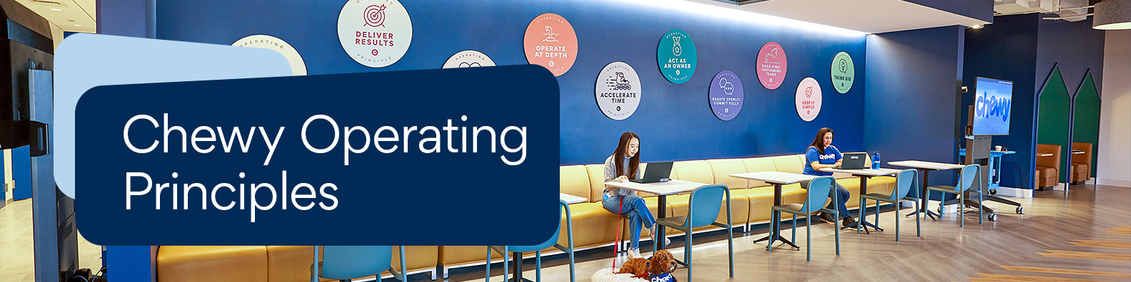 Rooted in our mission to be the most trusted and convenient destination for pet parents and partners, everywhere, we’re guided by our Chewy Operating Principles (or OPs for short), which serve as a common framework that drives our character, capabilities, ingenuity and operations.